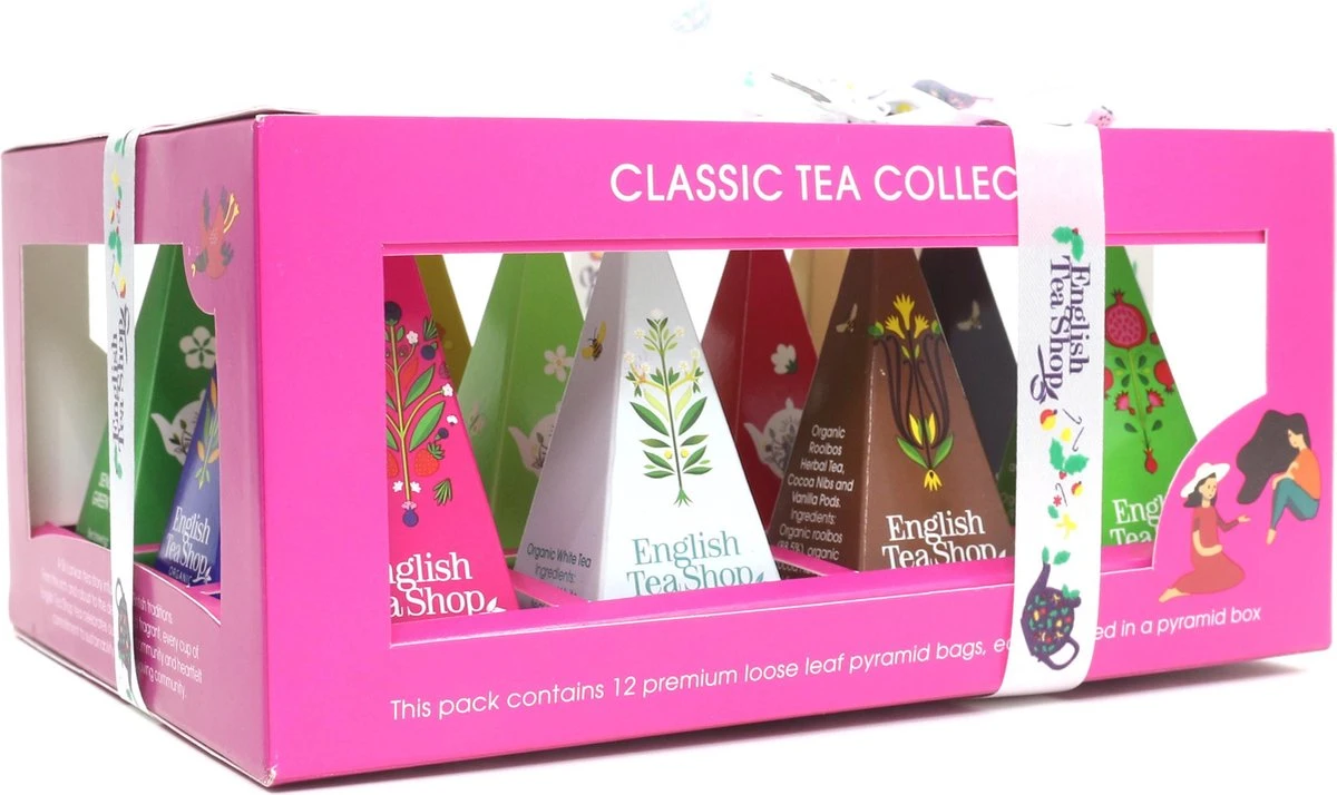 Deze Thee Classic-collectie is versierd met een strik. In deze mooie verpakking zitten 12 verschillende soorten van onze beste biologische theesoorten. Het is een fantastisch cadeau voor elke theeliefhebber of een geweldige kennismaking met de smaken en de variatie van de aangeboden thee.