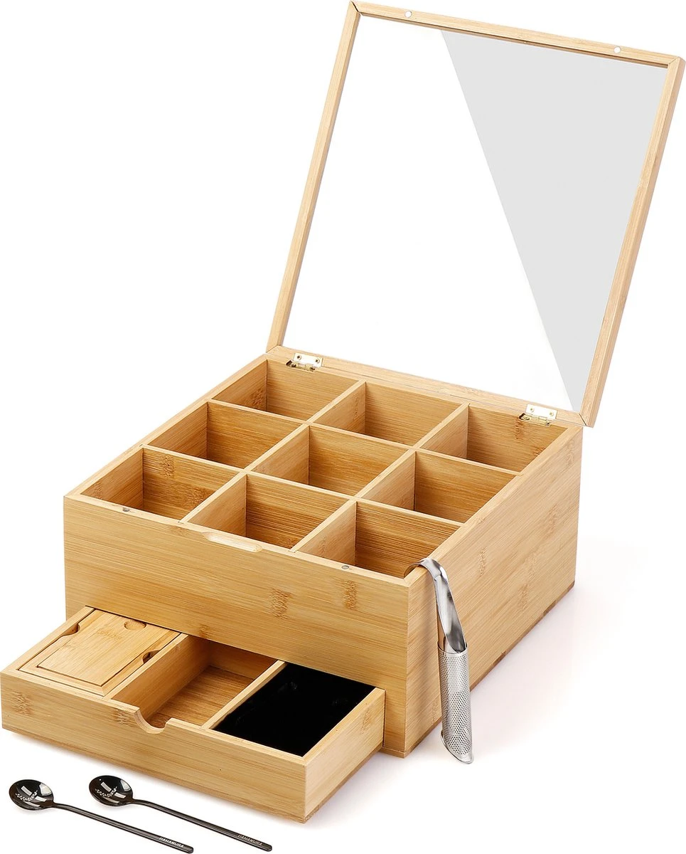 Hanamura Luxe Theedoos 9 Vaks – Lade Voor Losse Thee – Incl. Thee-ei, Theelepels, En Suikerdoos