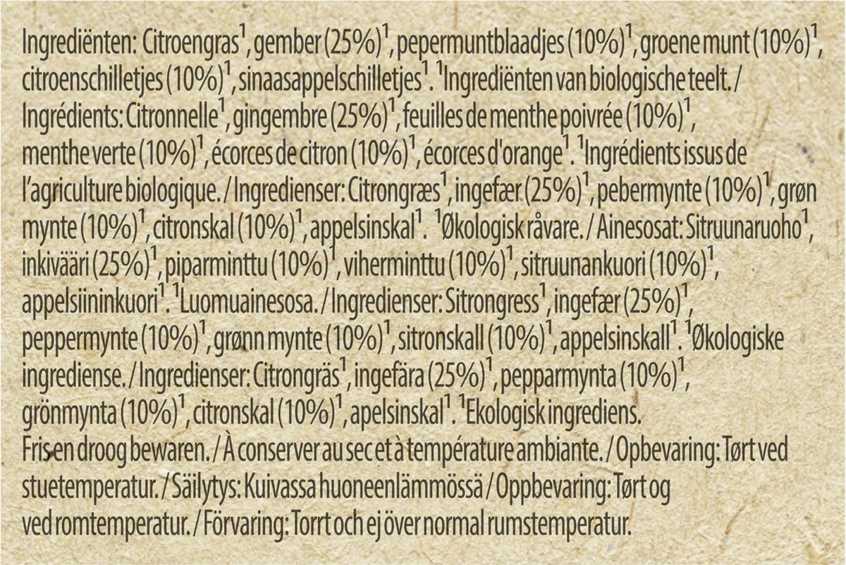 - Een biologische thee met de vurige smaak van gember en frisse citroen