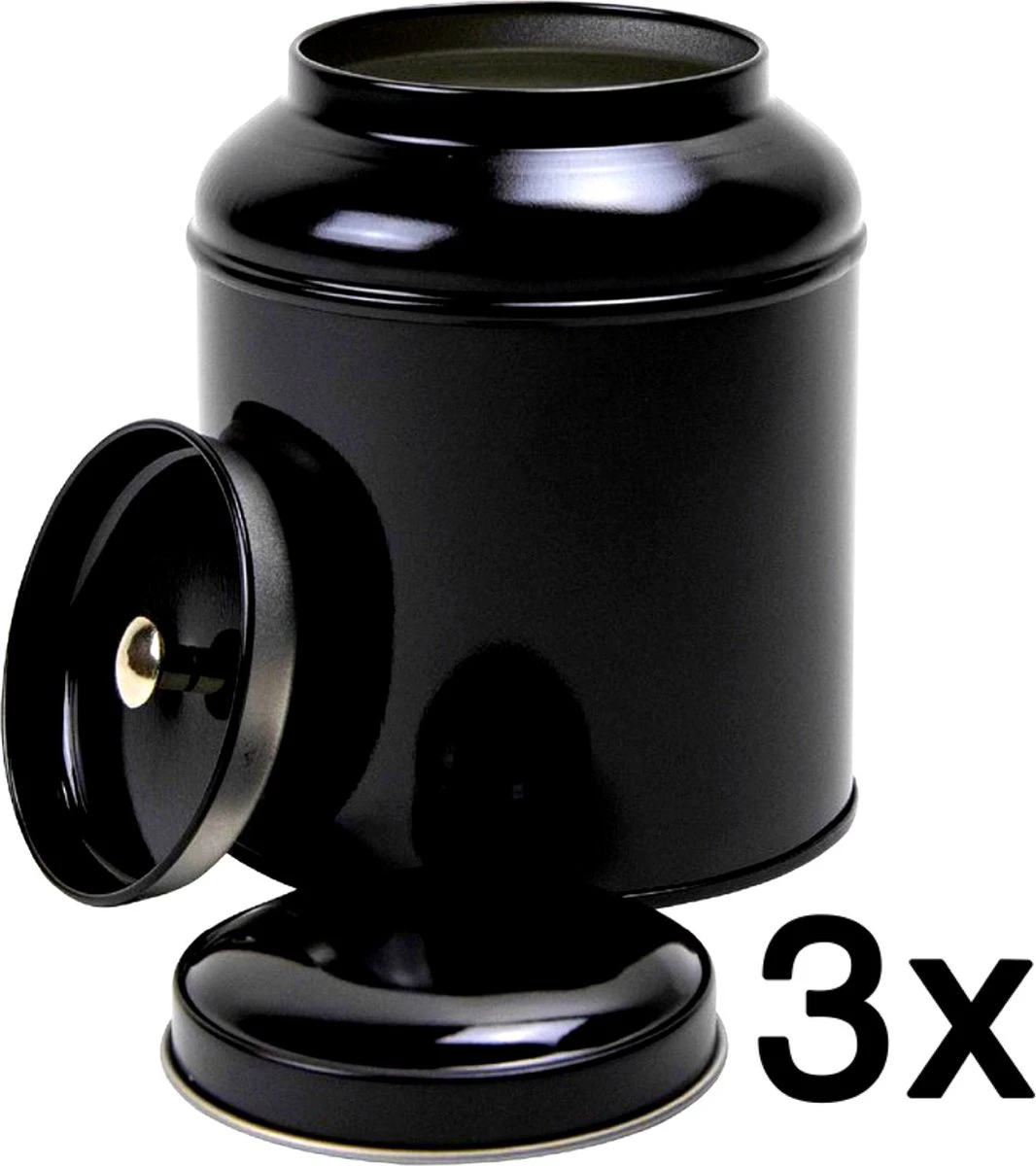 | Verpakkingsinhoud | 3 stuks zwarte theeblik rond met binnendeksel. |