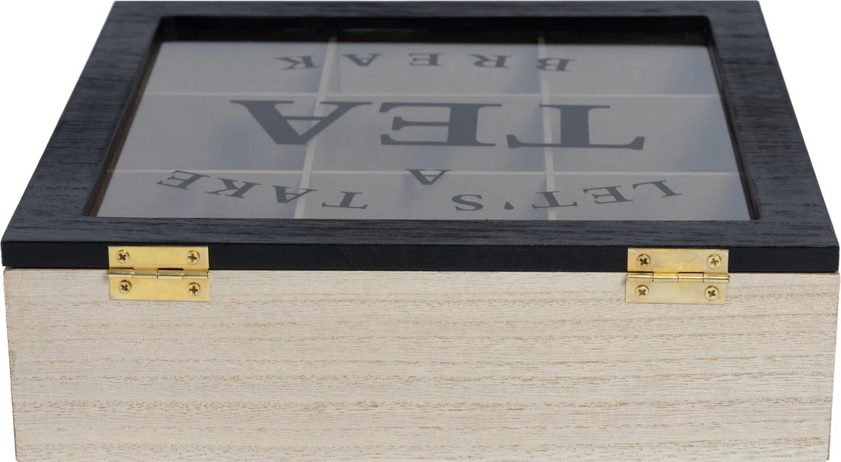 Theekist – Bruin – Hout 9-Vaks – Glazen Deksel – Theedoos – Tea Break