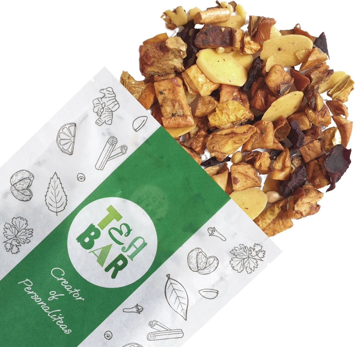 Notendroom is bedacht door Tea Bar en is exclusief bij Tea Bar te koop. Laat je niet misleiden door vele nepmelanges die als Notendroom worden verkocht.