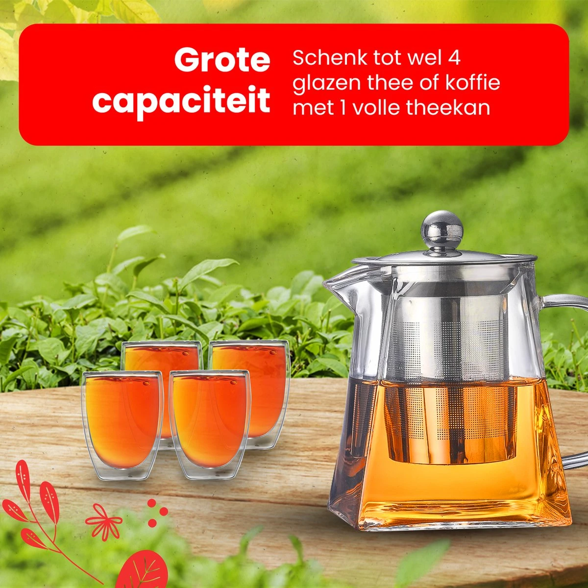 Procidi® Glazen Theepot Met Filter – Theekan Met Infuser – Dubbelwandig Borosilicaat Glas – Thee Thermoskan – Koffiekan 750 ML – Teapot