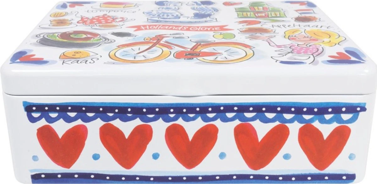 Het theeblik van Blond Amsterdam Hollands glorie is voorzien van typisch Nederlandse dingen zoals de fiets, tulpen en het grachtenhuisje, maar ook typisch Nederlands eten zoals de tompouce, kaas en appeltaart. De vrolijke schildering op het theeblik zorgt voor een glimlach bij de ontvanger. Populair onder de Hollandse cadeautjes.