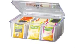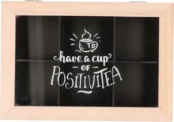 Excellent Houseware Houten Theedoos/theekist Met 3 Vakken – 24 X 9 X 9 Cm – Antraciet – Theedozen