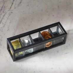 Riviera Maison Theedoos 6 Vakjes, Transparante Deksel – Room 48 Tea Box – Grijs – MDF, Glas