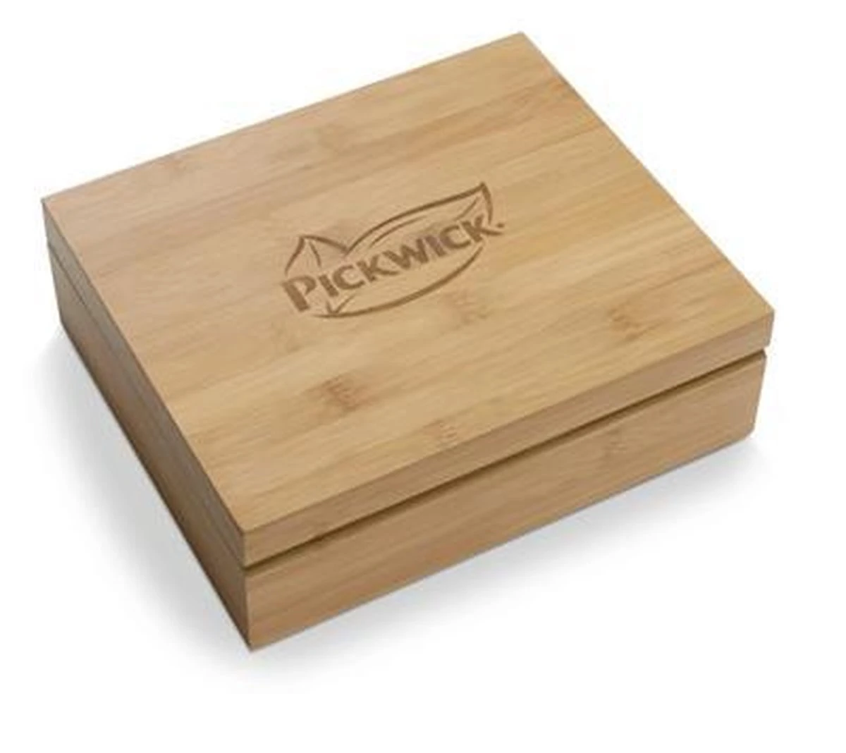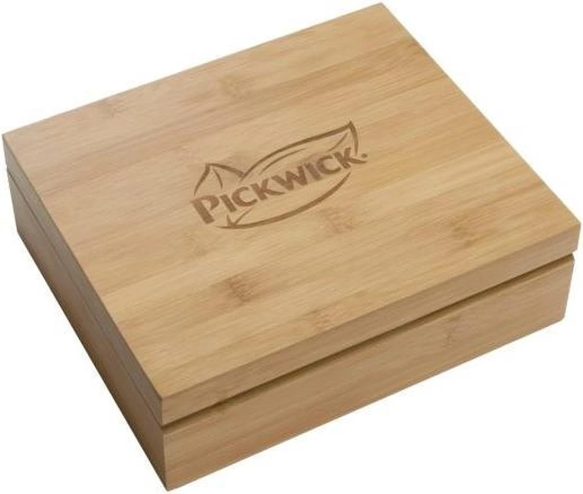 Deze luxe theekist van bamboe is een topper in onze collectie. Zeer scherp geprijsd en zeer volledig. Met de 12-vaks theekist van Pickwick kunt u op een leuke en overzichtelijke manier verschillende soorten thee op tafel zetten. De 12-vaks bamboe theekist is gevuld met de meest populaire en enkele nieuwe melanges van Pickwick, en biedt daarmee een ideale manier om een divers aanbod te presenteren aan je klanten en medewerkers. Natuurlijk ook ideaal voor thuis! De inhoud van de theekist bestaat uit 120 theezakjes; van iedere smaak 10 theezakjes.